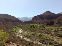11-12-2010 Barrareal to Uspallata. The town with a water supply can be seen up ahead as the first patch of deep green is seen today.